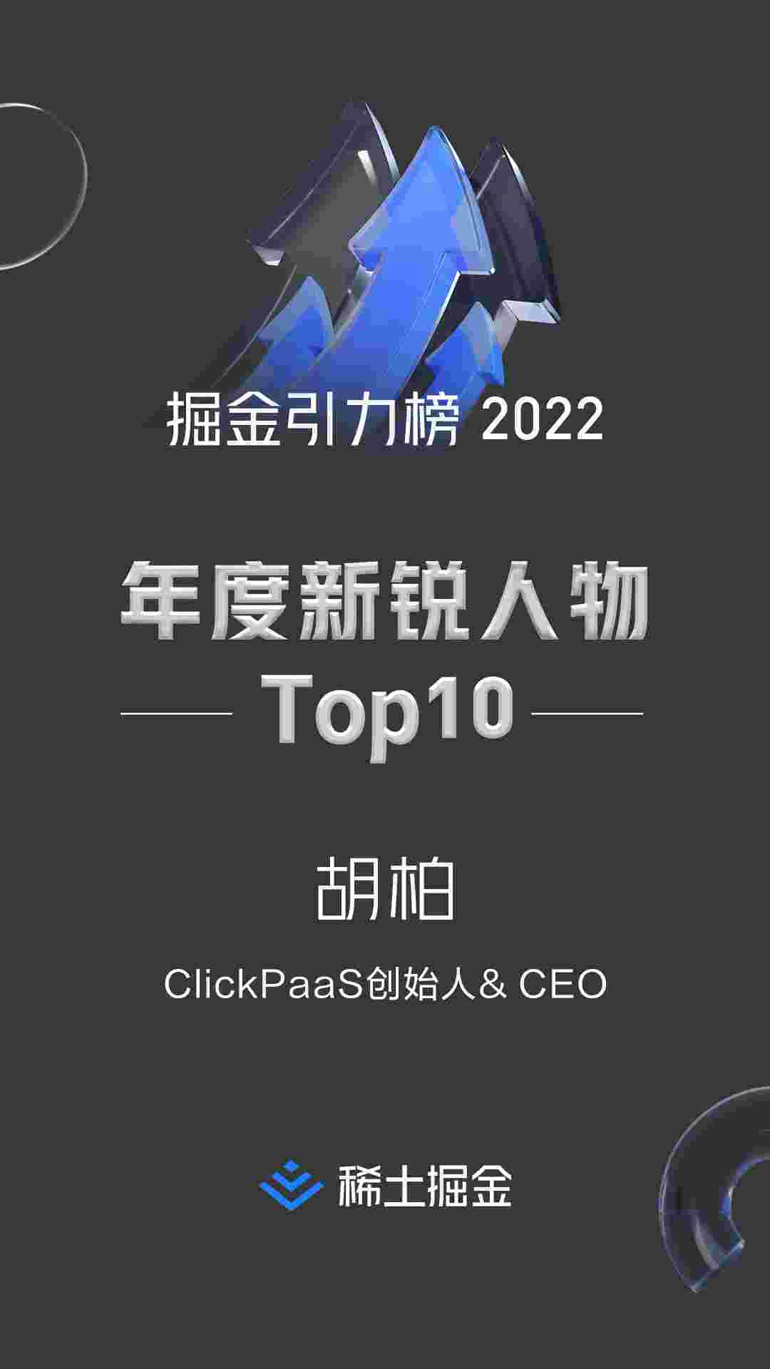 • 稀土掘金社区首届年度10大新锐人物榜单揭晓——小微钱包创始人、、、、、、、、、、CEO胡柏实力登榜